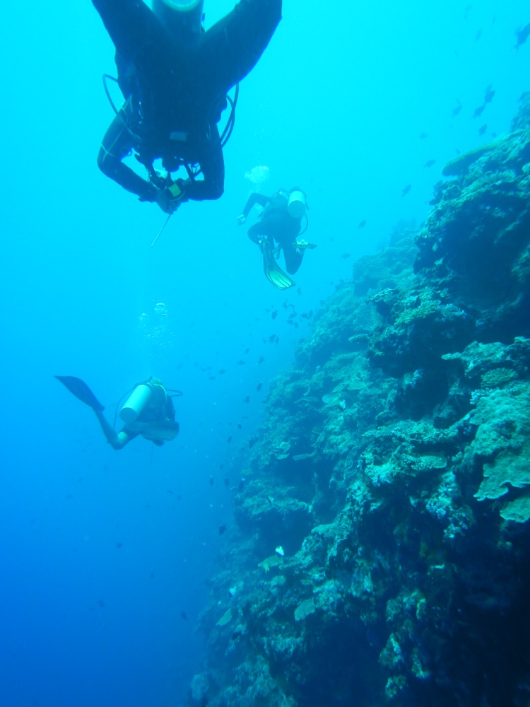 Le tour du récif se compose d’un « wall » profond. On se laisse dériver le long de la falaise.
