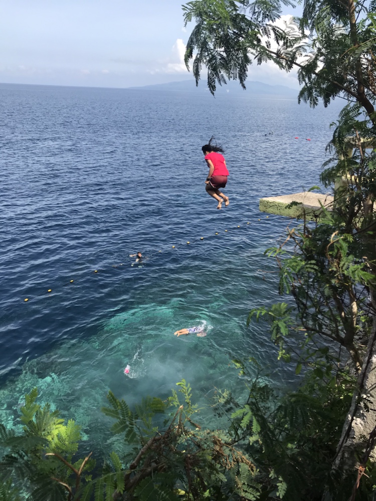Au Nord de Panglao, il y a la plage de Napaling. C’est un endroit très connu pour le free dive (et il y a aussi un plongeoir de 10m pour le fun). Cette plage est caractérisée par le fait qu’il faut nager 5m depuis le bord et ensuite il y a une falaise de 100 m !