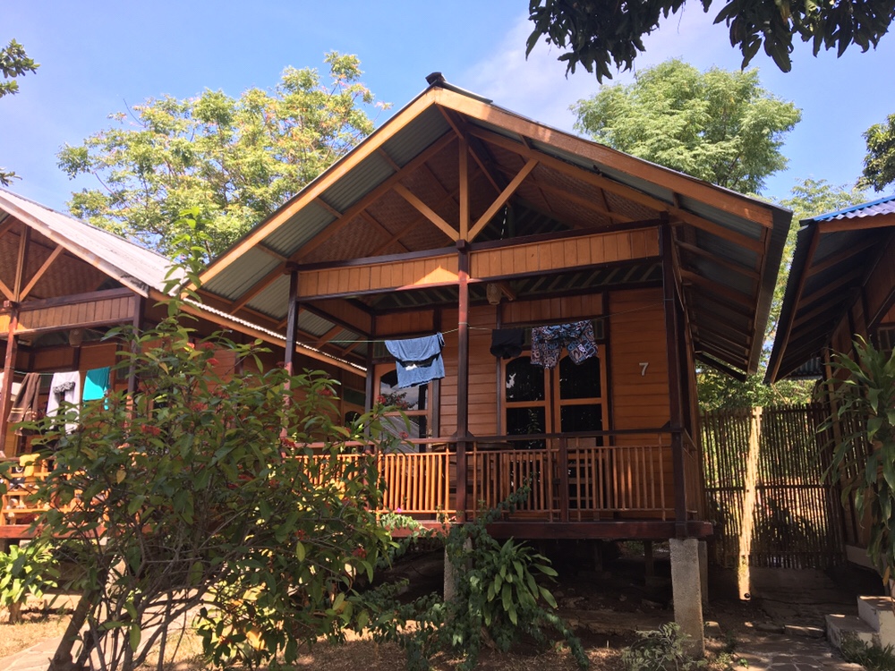 Arrivé sur l’ile, le MC Dive Resort semble être un bon choix. Bungalows au bord de la plage, à une dizaine de mètres de l’eau.