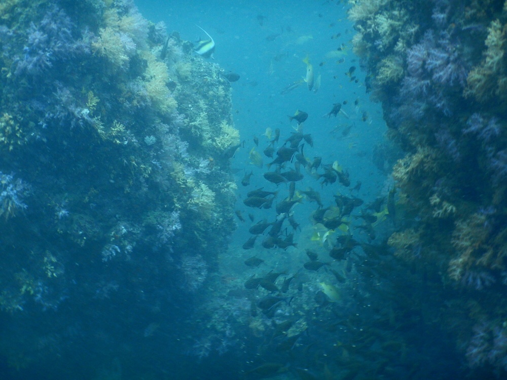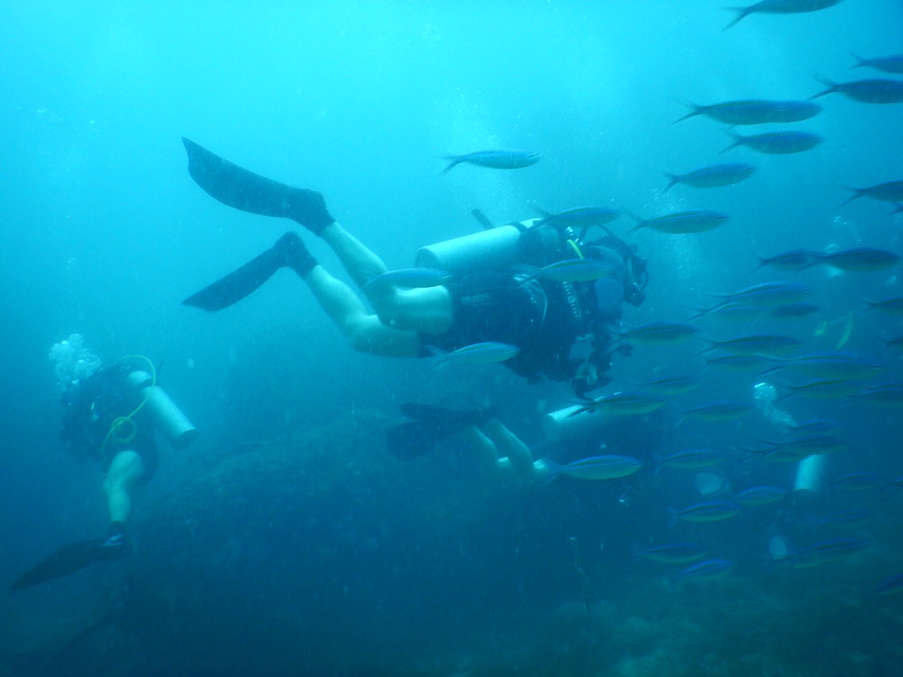 L’eau est bonne, elle fait 29 C. A certains endroits, on traverse des bancs de poissons.