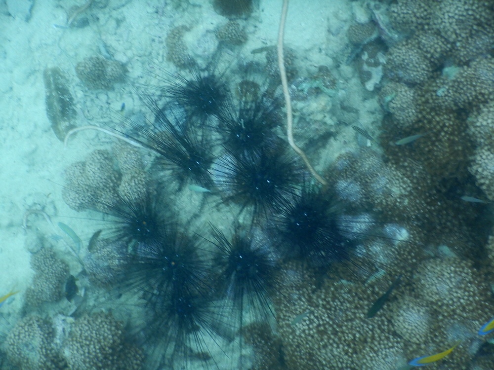 Quand les accompagnateurs insistent en disant « Ne poser pas les pieds sur le fond », on comprend mieux car il y a des oursins partout !