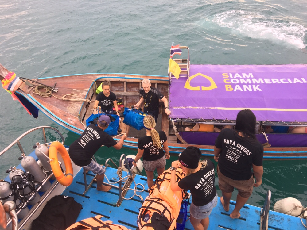 Depuis ici, on n’est pas loin de l’île de Koh Phi Phi qui est connue pour ses sites de plongée. Il faut faire deux heures de bateau pour s’y rendre:Le bateau pour la plongée est tout équipé pour permettre à une vingtaine de plongeurs de faire 3 plongées durant la journée: