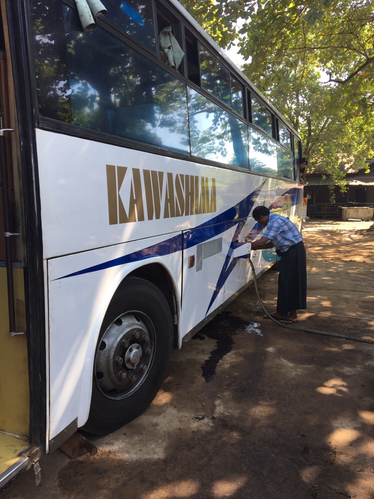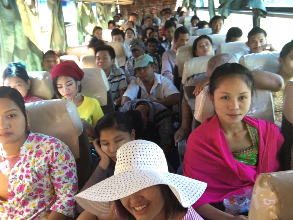 Une fois arrivé au village de Kinpun, il faut faire 45 min sur un camion pour atteindre le rocher. Le chauffeur roule comme un fou !