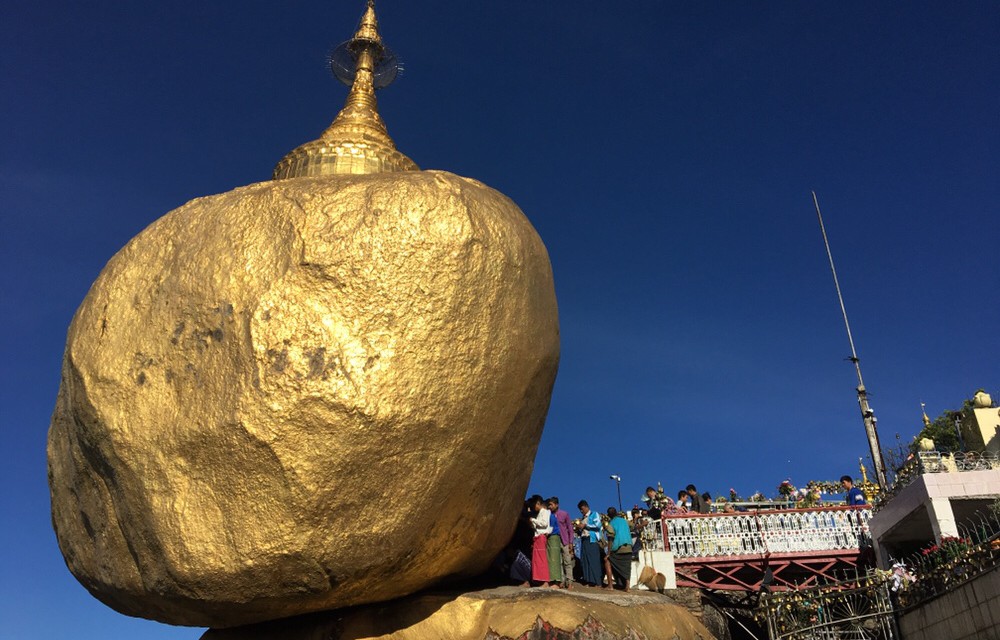 Le Rocher d’Or, ou Mont Kyaikhtiyo, se situe a 4h de bus au sud de Yangon. Il faut d’abord atteindre la ville de Kyaikto et ensuite prendre un transport jusqu’au village de Kinpun, au pied de la montagne.