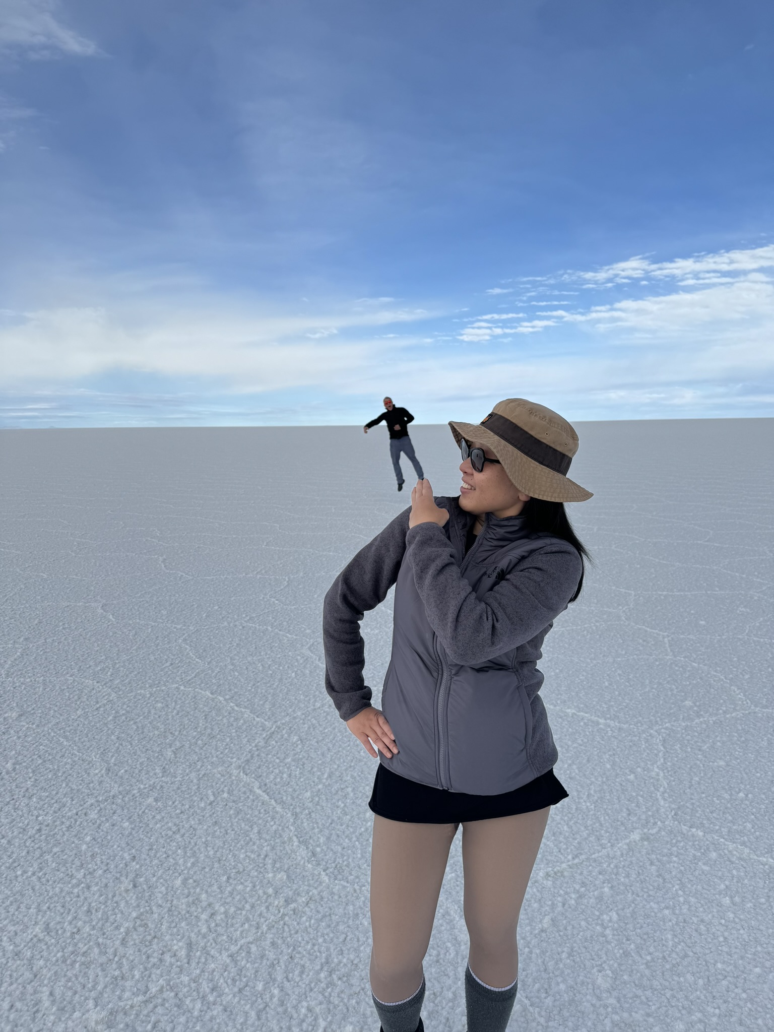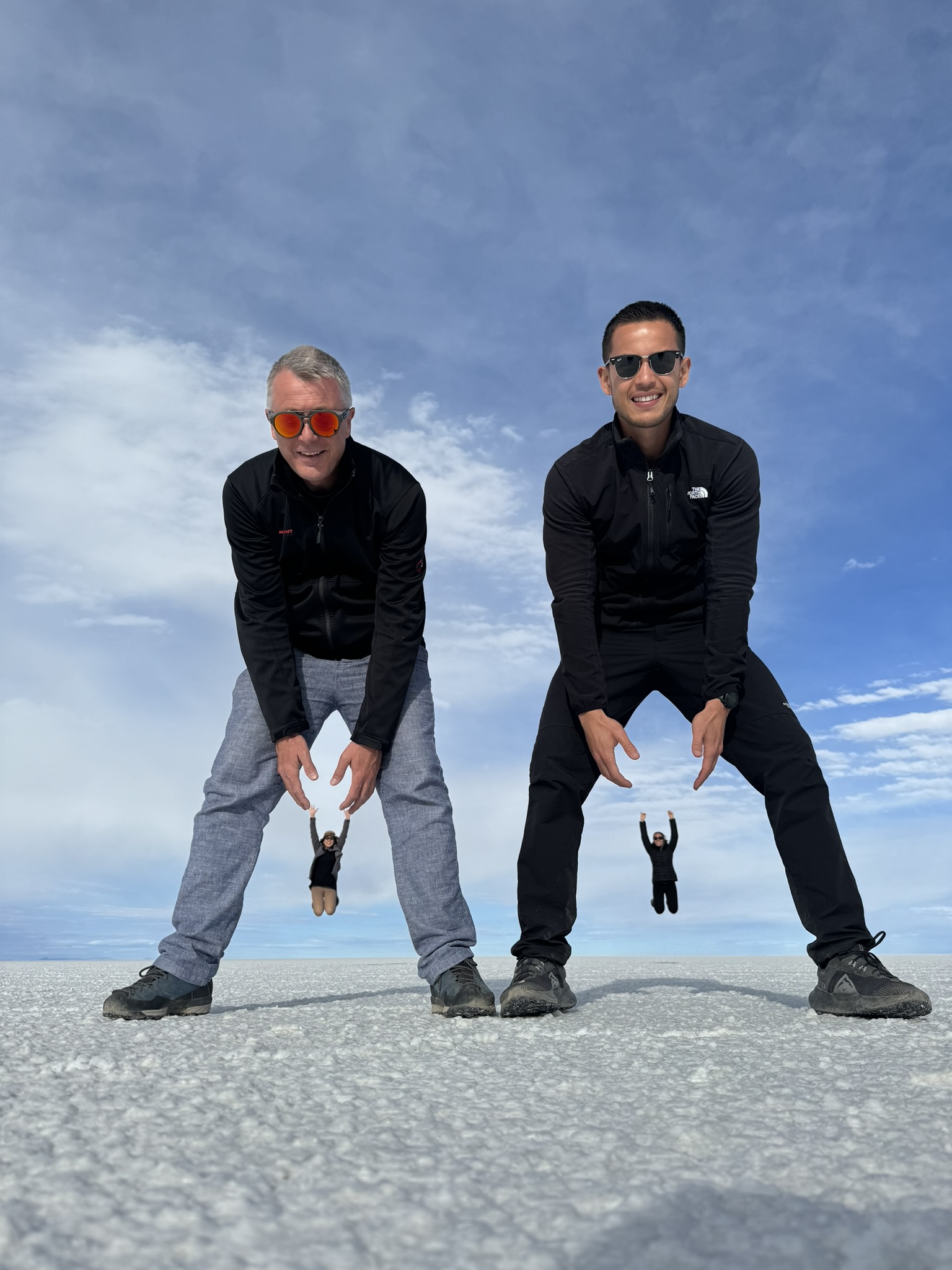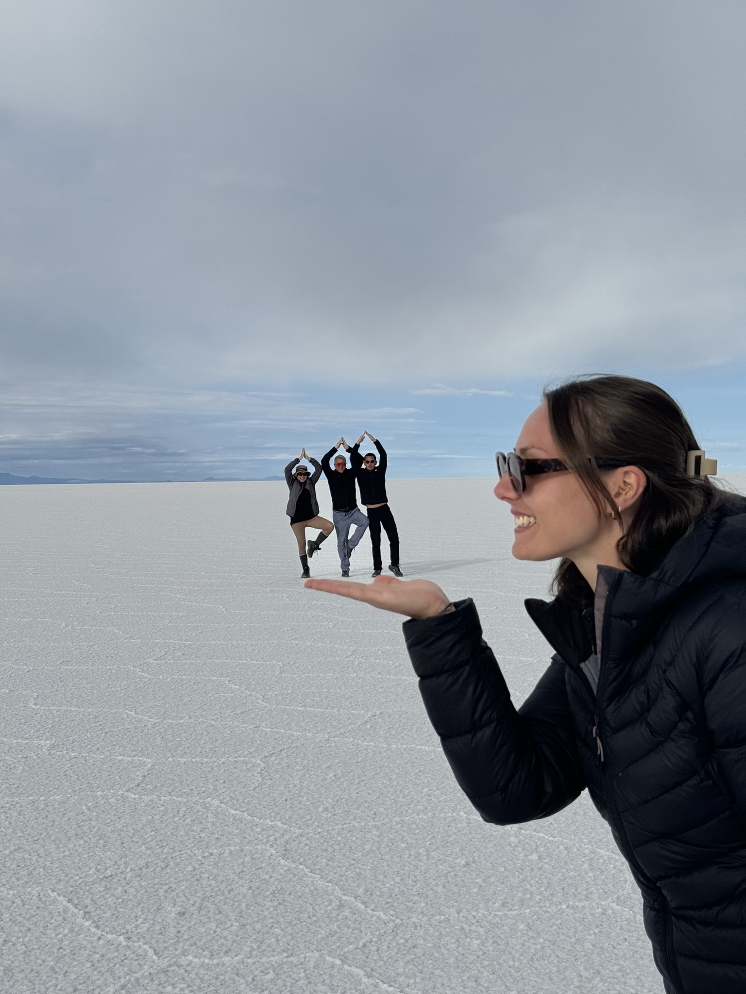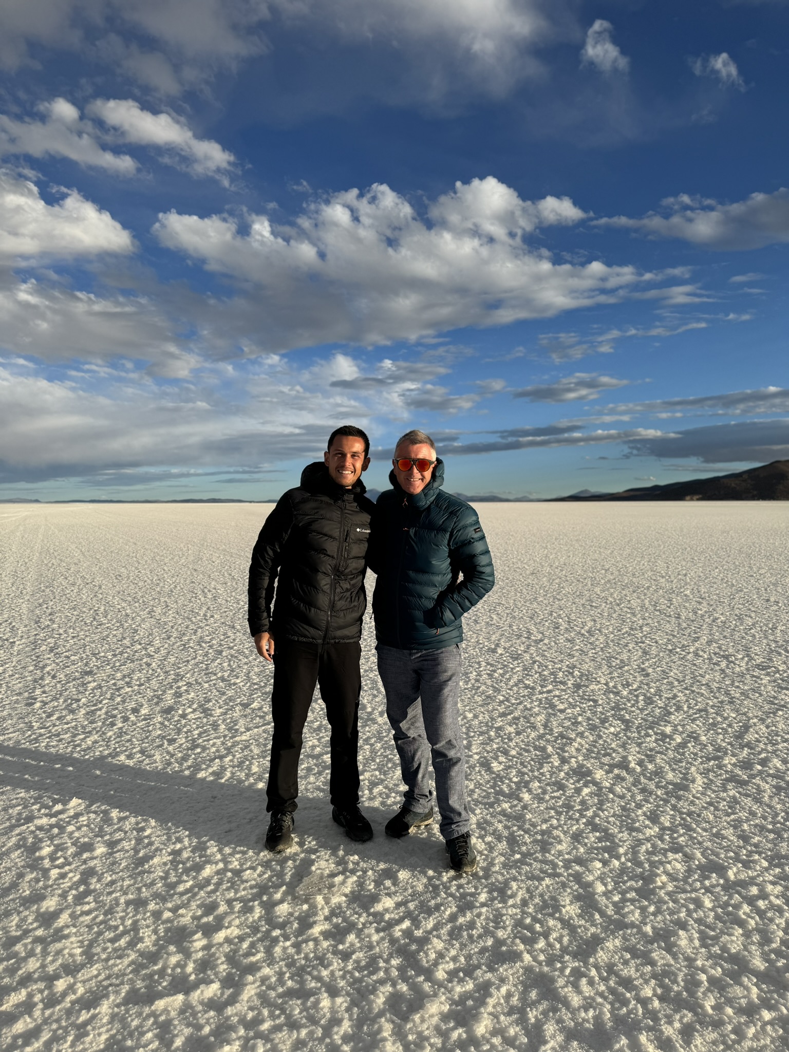 Le premier jour était dans le Salar d’Uyuni. C’est une immense étendue de 12000m2 de désert de sel à plus de 3600m d’altitude.