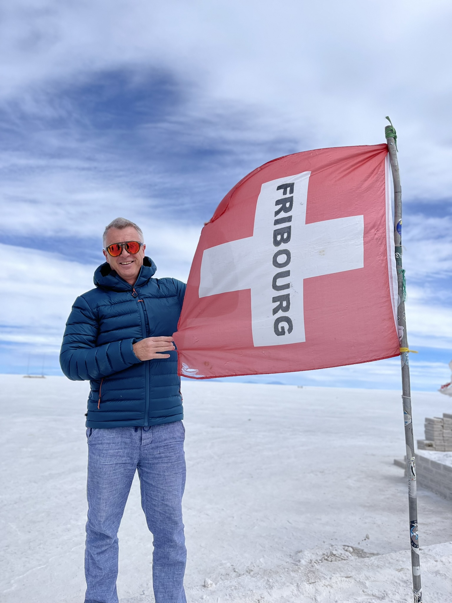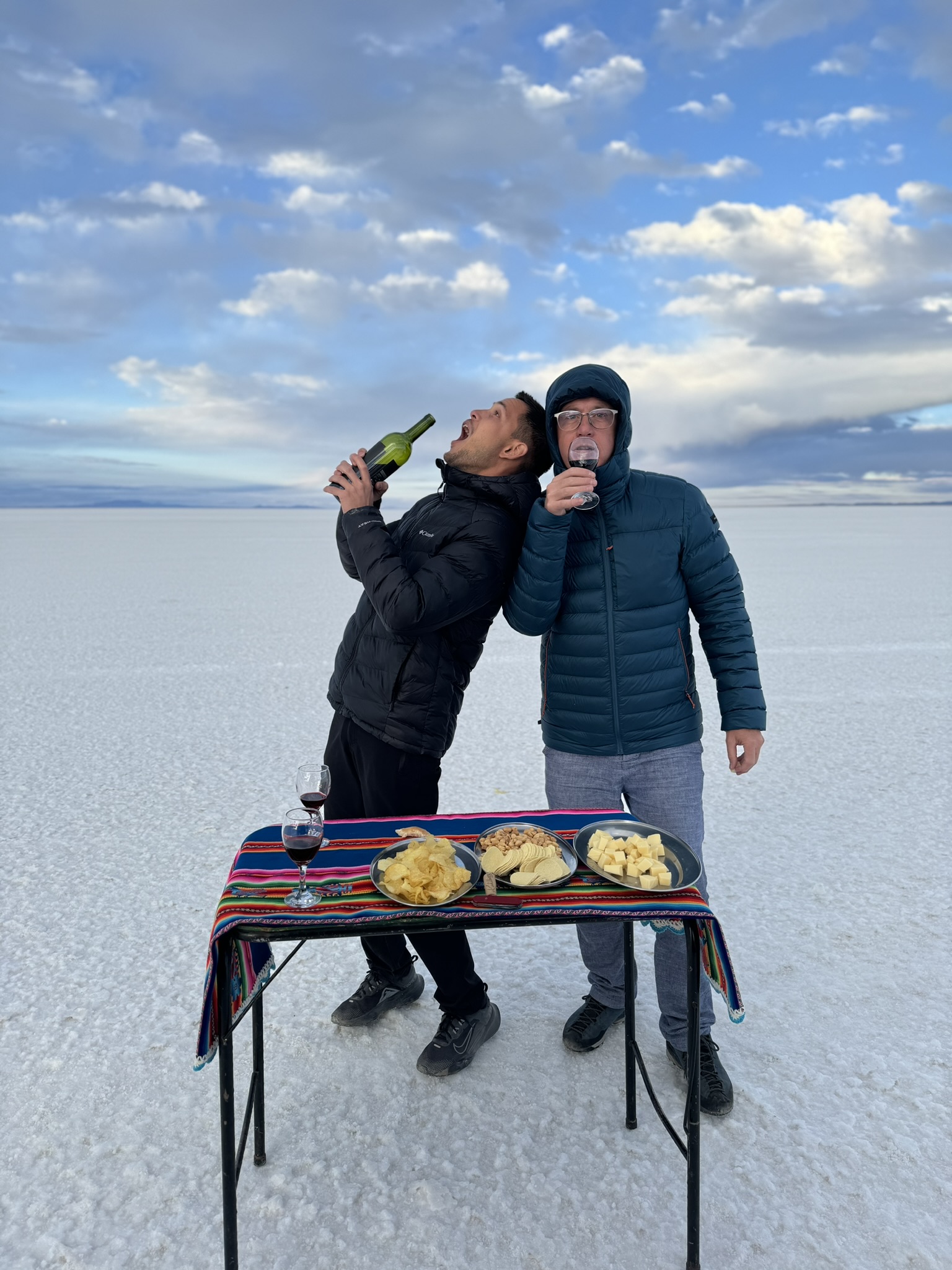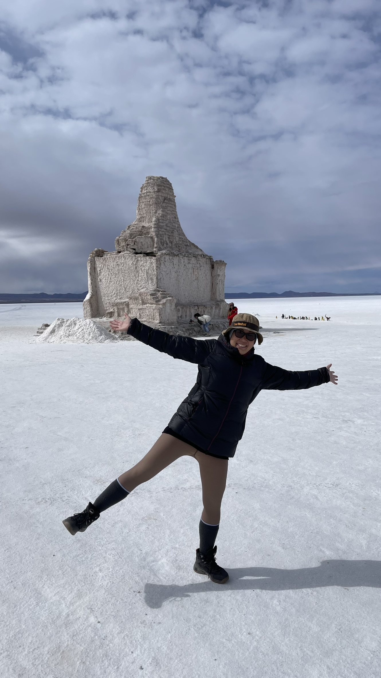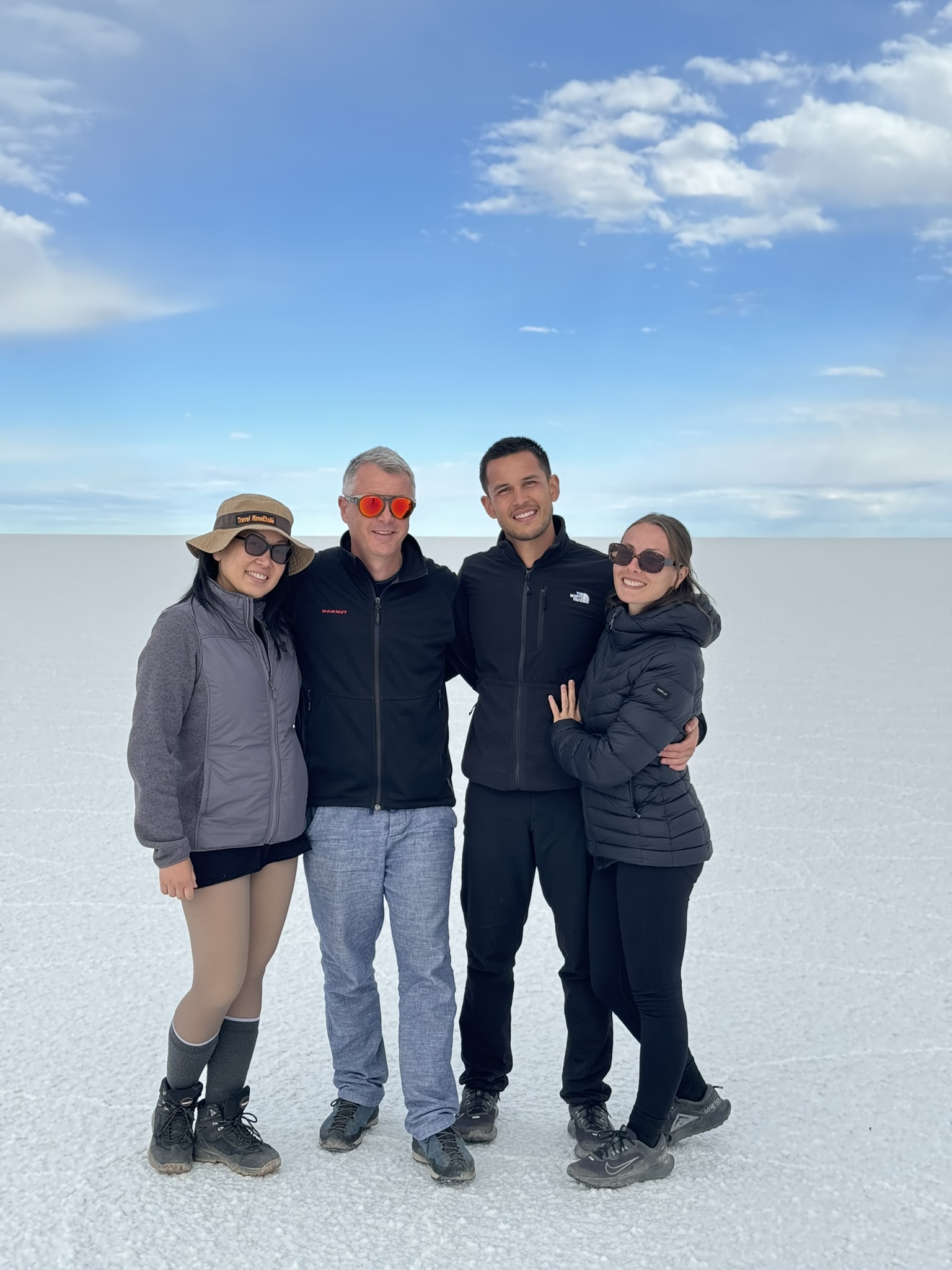 Le premier jour était dans le Salar d’Uyuni. C’est une immense étendue de 12000m2 de désert de sel à plus de 3600m d’altitude.