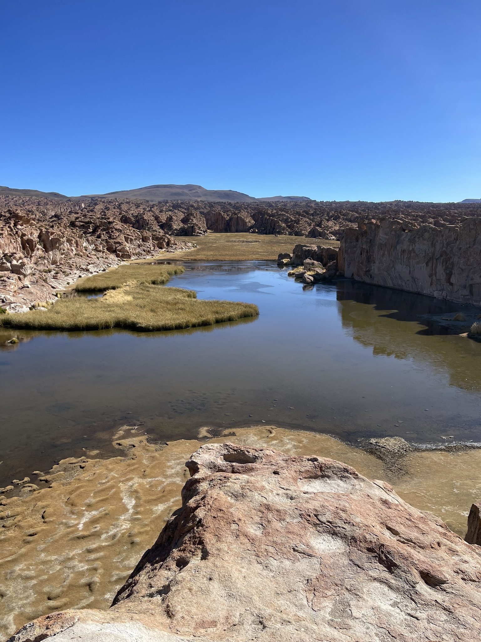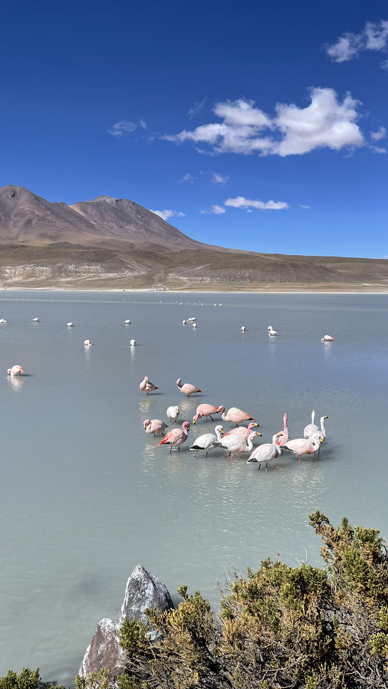 Le deuxième jour, nous avons visité le Lipez avec ses plateaux au dessus de 4000m et ses montagnes. Il y a également des lagunes peuplées par des flamants roses.
