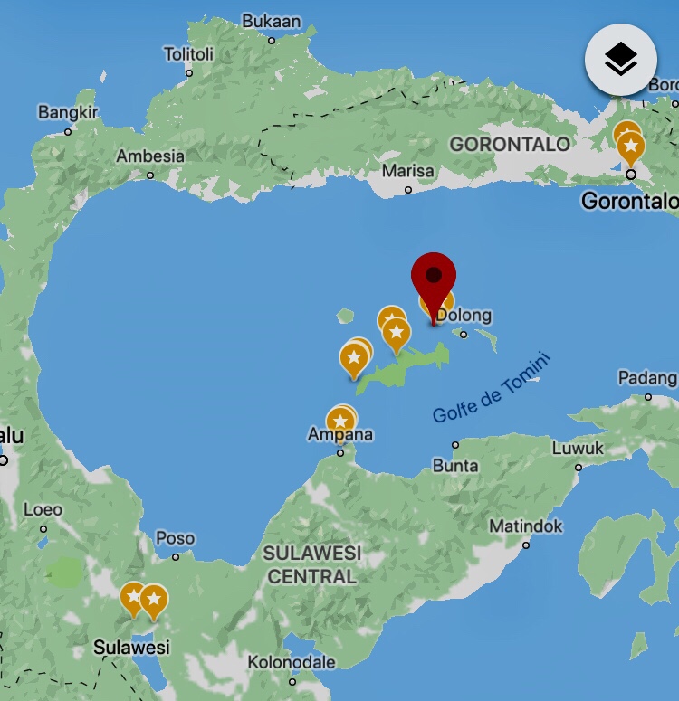 Les îles Togian sont formées de 56 petites îles au milieu de la mer qui sépare Ampana (au Sud) et Gorotalo (au Nord). L’île choisie, pour passer quelques jours, est Malenge, une des plus éloignées d’Ampana. Il n’y a pas de réseau de téléphone, ni Internet, ni d’électricité si ce n’est une génératrice de 18h a 23h. Il n’y a pas de route sur les îles, seulement la jungle.