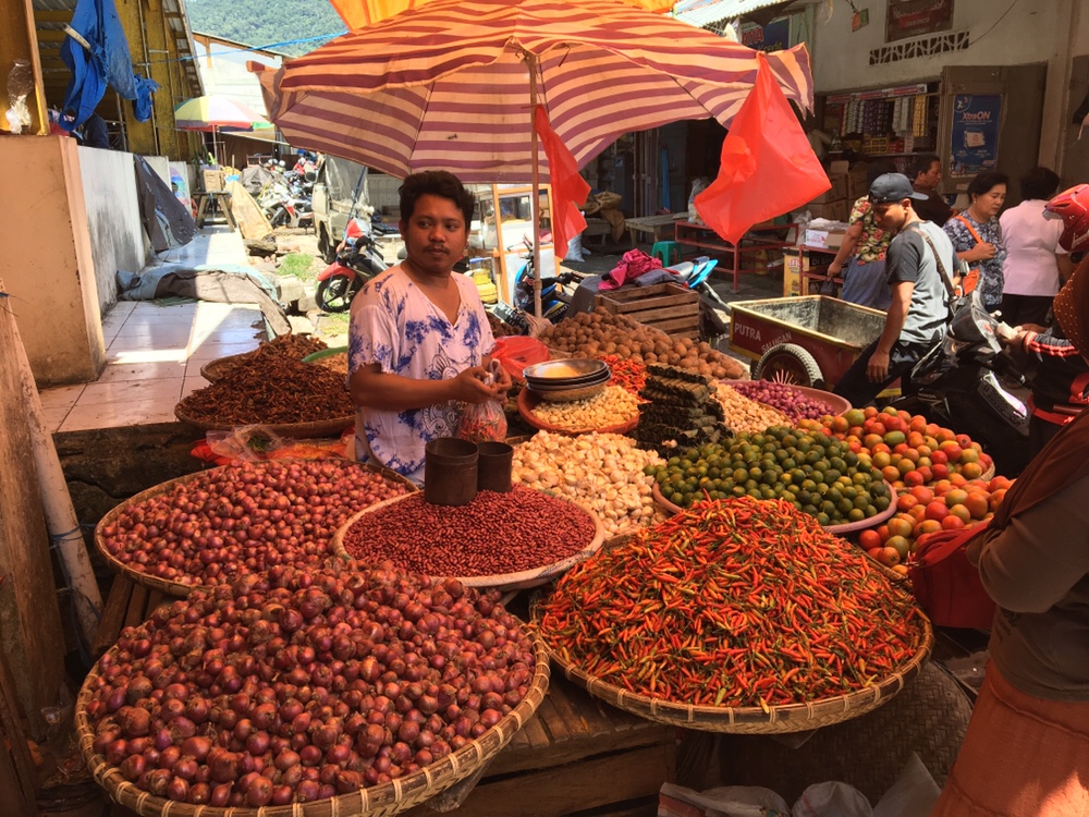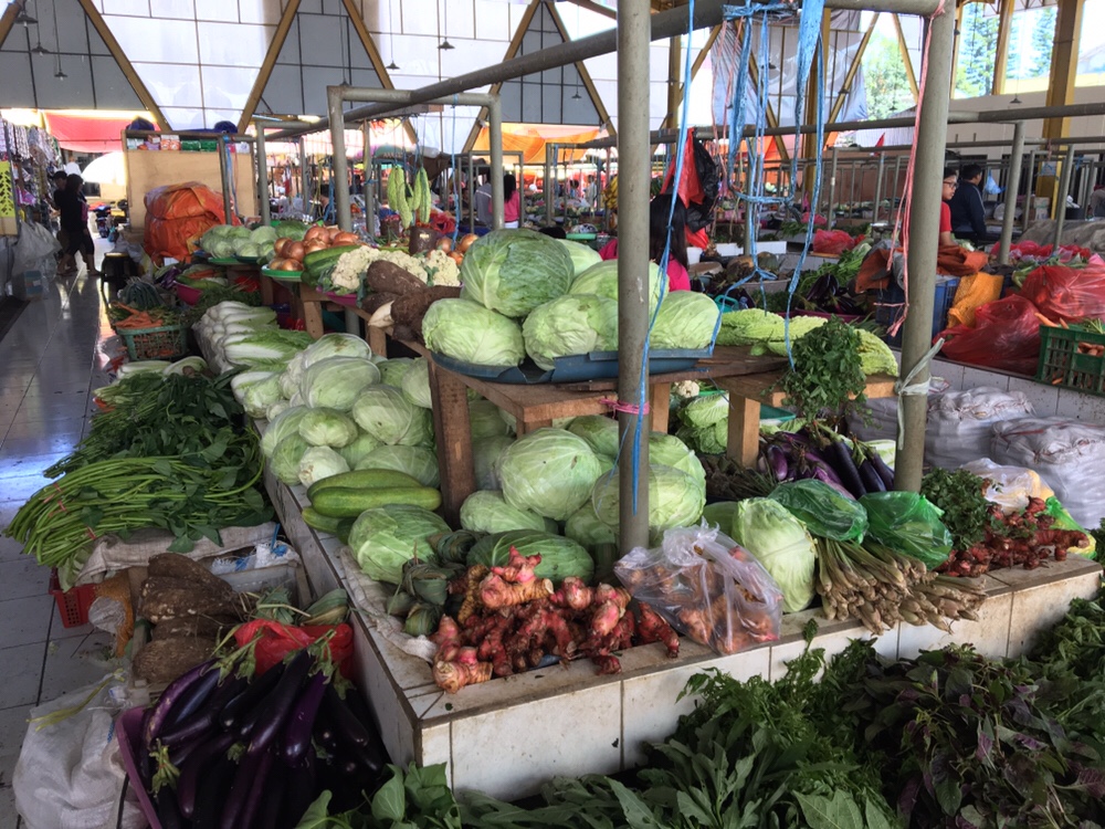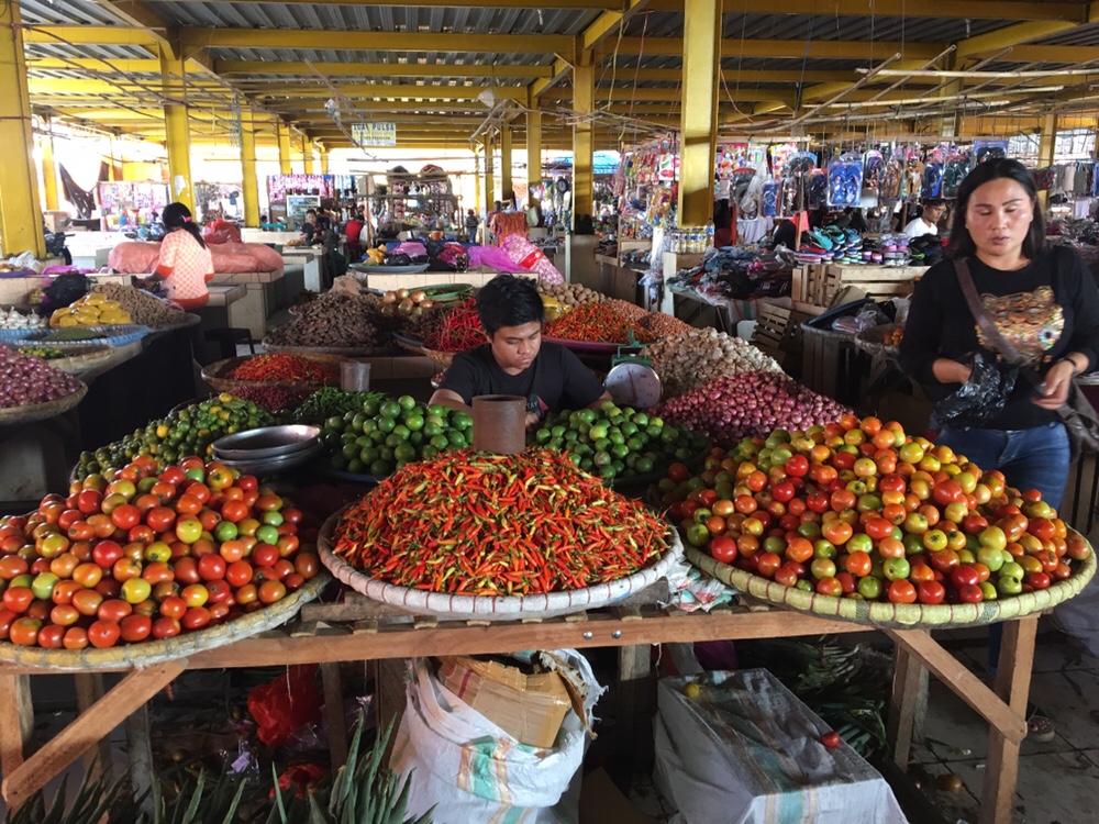 A Tomohon, il y a un marché connu, appelé Pasar Beriman. On y trouve les étalages standards de fruits, legumes, épices: