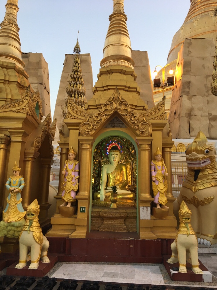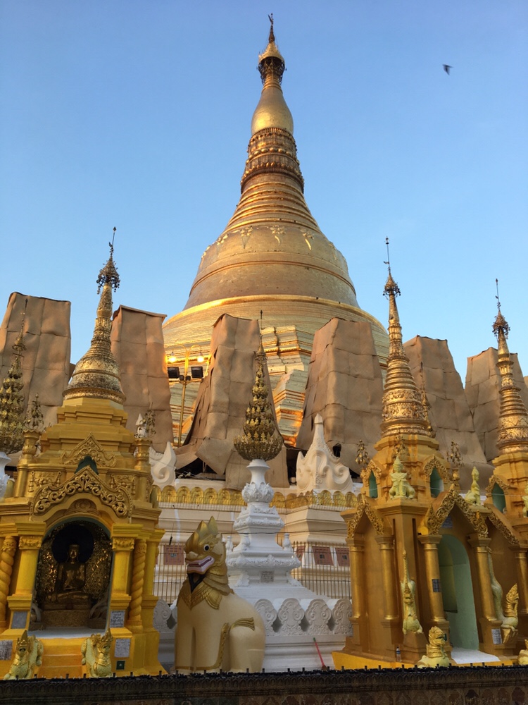 La prochaine visite est le lieu le plus sacré pour les bouddhistes: c’est le Paya Shwedagon. Selon la légende, la stupa existe depuis 2500 ans. Elle fait 100m de haut est couverte de 27 tonnes d’or. Le monument est vraiment impressionnant: